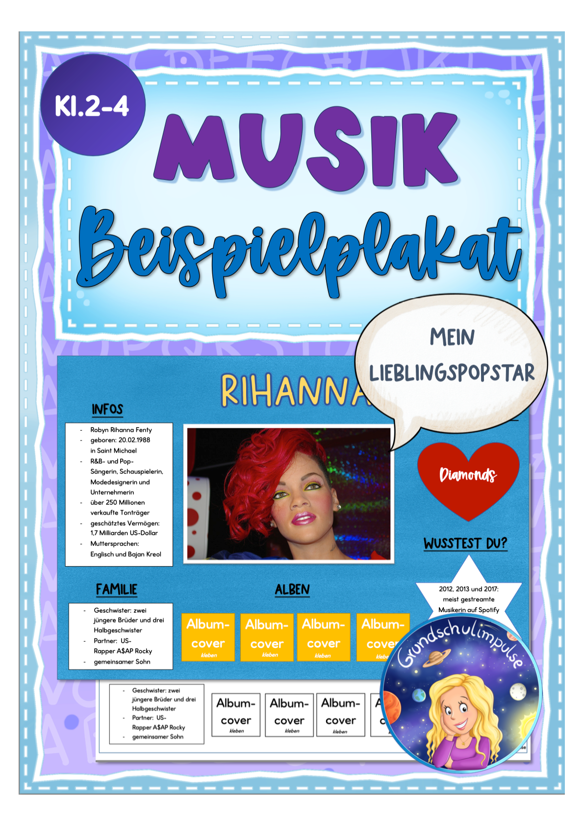 Auf meinem Profil findest du eine komplette Unterrichtsreihe zum Thema "Mein Lieblingspopstar" inklusive einer Plakaterstellung!