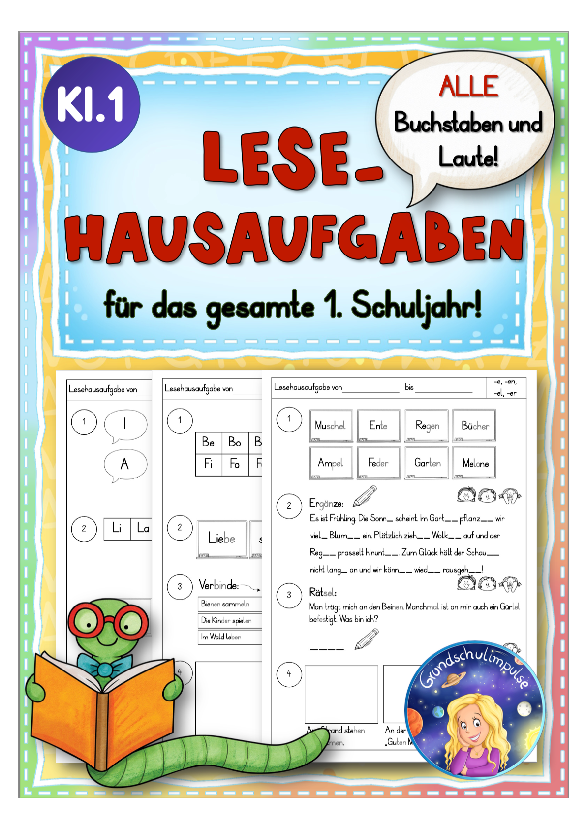Lesehausaufgaben für ALLE Buchstaben/Laute (Kl.1)