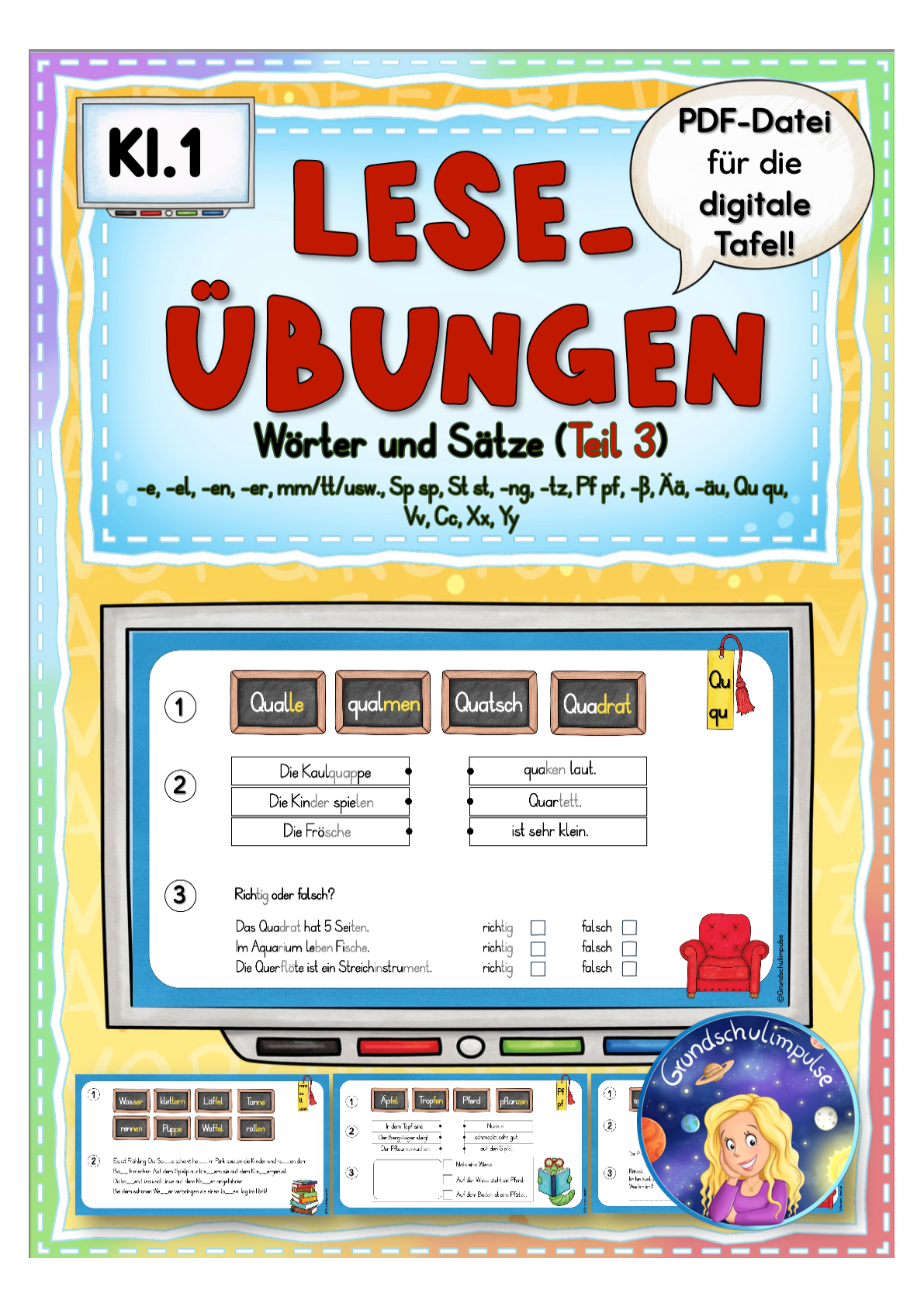 Leseübungen für digitale Tafel - Teil 3 (Klasse 1)