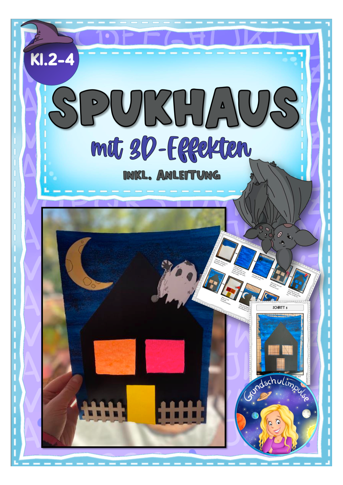 Dieses Spukhaus mit 3D-Effekten habe ich für die 2.+3. Klasse konzipiert.